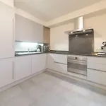 Selvbetjenings faciliteter indeholder et køleskab, køkkenudstyr og en vaskemaskine.